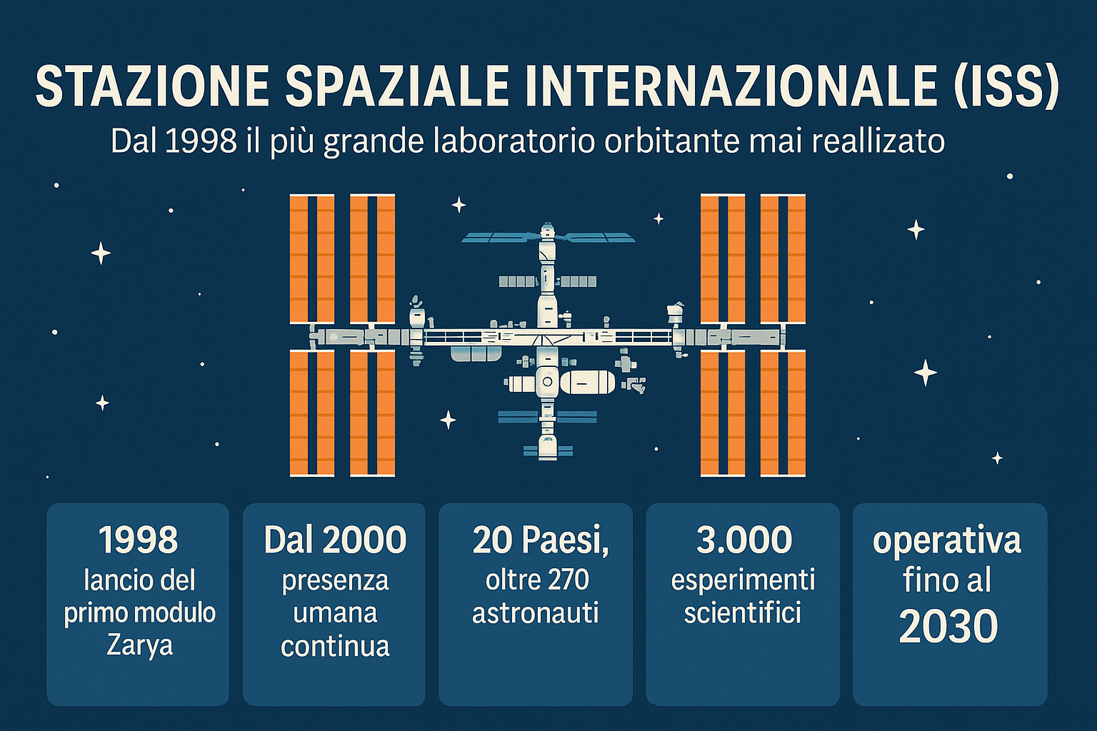La Stazione Spaziale Internazionale (ISS) è una piattaforma orbitante abitata permanentemente che rappresenta la collaborazione internazionale più grande nella storia dell’esplorazione spaziale. Serve come laboratorio scientifico, stazione di osservazione terrestre e centro per esperimenti tecnologici in microgravità.